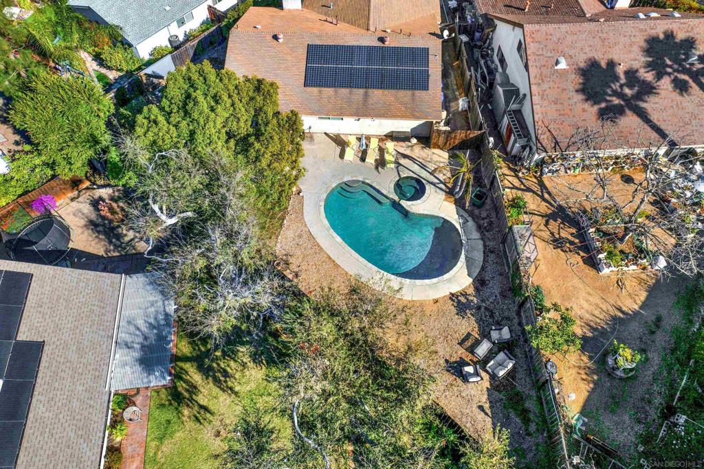 MOVE IN READY with OWNED SOLAR, in the highly desirable Westwood Community. Updated and situated on the end of a cul de sac with your own private pool and spa. The kitchen is light and bright featuring granite counters, wood grained tile flooring, stylish pendant lighting and a center island with seating. Recent improvements include new tankless water heater, shower insert in primary bath, fresh interior paint, a new independent 50 amp circuit and ring camera's. Fireplace in the living room is gas with a wood mantle. Enjoy the privacy of the large backyard with covered patio, lemon tree, plus black bottom pool & spa. 16 paid solar panels keep costs down and energy efficient. Amazing location with ease of access to highways, shopping, outdoor recreation and acclaimed poway unified schools. Amenities at the Westwood club include Olympic size pool, hot tub, children's wader pool, playground, baseball field, tennis courts, pickleball courts, picnic area, shuffleboard, miniature golf, handball courts, soccer field, and horseshoe pit. Indoor facilities include the fitness center, gymnasium, racquetball, saunas, billiard room, teen center, multi-purpose room, and a preschool for a separate fee. They also provide community activities such as the annual family campout, annual movie night at the pool, and more. Enjoy the privacy of the large backyard with covered patio, lemon tree, plus black bottom pool & spa. 16 paid solar panels keep costs down and energy efficient. Amazing location with ease of access to highways, shopping, outdoor recreation and acclaimed poway unified schools. Amenities at the Westwood club include Olympic size pool, hot tub, children's wader pool, playground, baseball field, tennis courts, pickleball courts, picnic area, shuffleboard, miniature golf, handball courts, soccer field, and horseshoe pit. Indoor facilities include the fitness center, gymnasium, racquetball, saunas, billiard room, teen center, multi-purpose room, and a preschool for a separate fee. They also provide community activities such as the annual family campout, annual movie night at the pool, Easter egg hunt, and more.